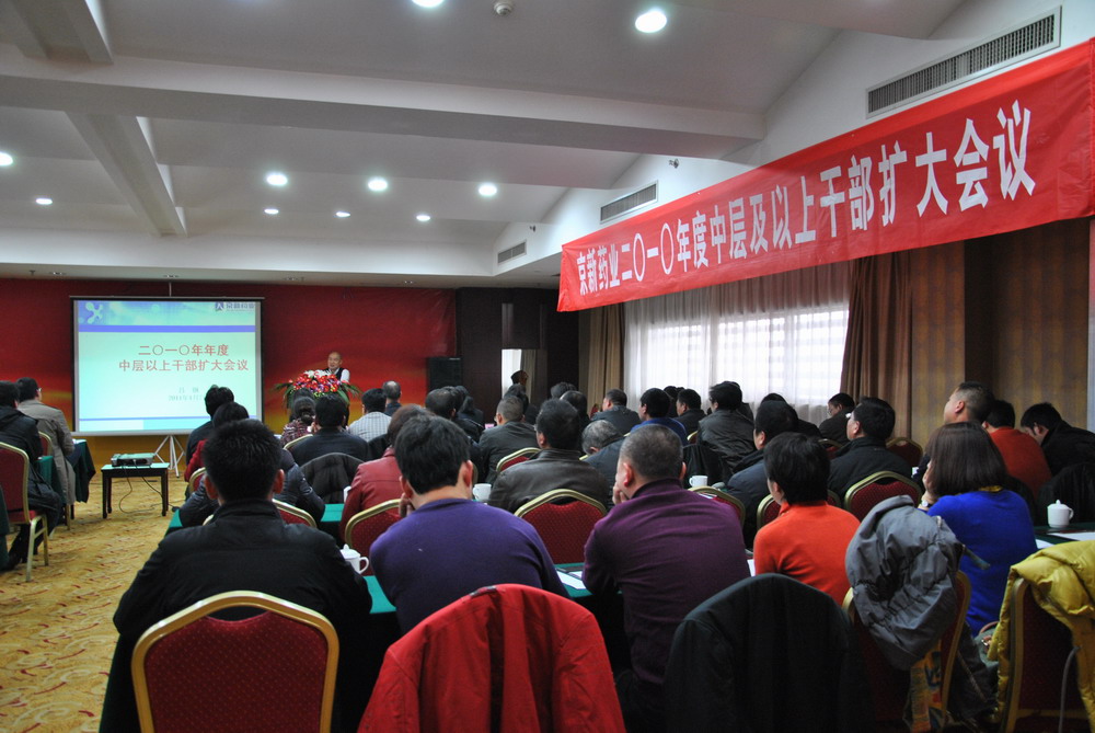 1月7日下昼,公司在泰坦国际大旅馆黄山厅召开2010年年度中层及以上干部扩大聚会,回首总结2010年岁情,展望安排2011年岁情,公司四个生产基地的中层及以上干部、部分焦点主干职员加入了聚会,聚会由常务副总司理王能能主持。